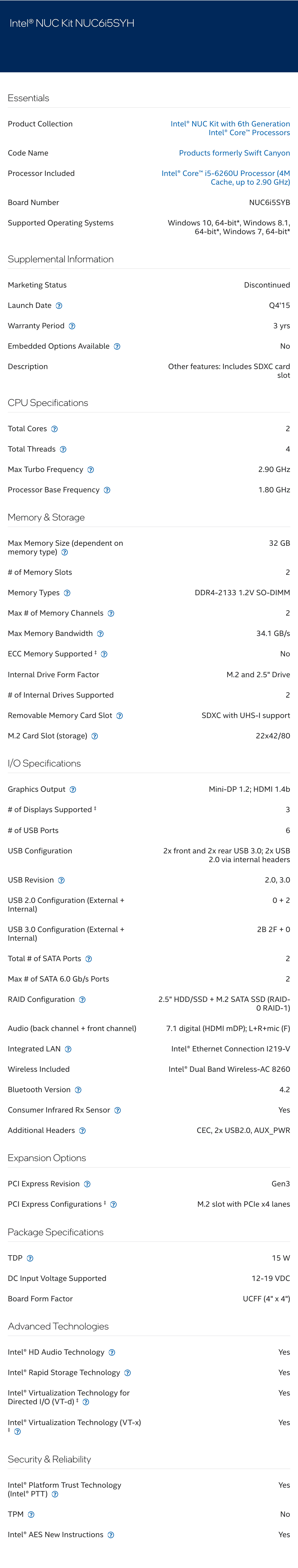 Intel NUC Swift Canyon (NUC6i5SYH)