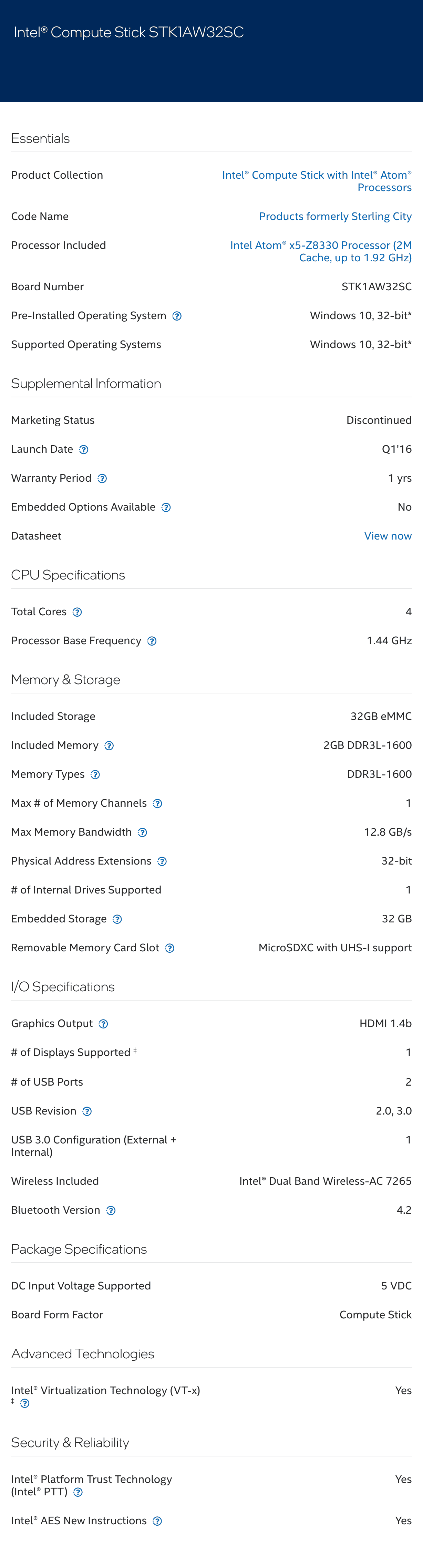 Intel Compute Stick Sterling City (CS125/STK1AW32SC)